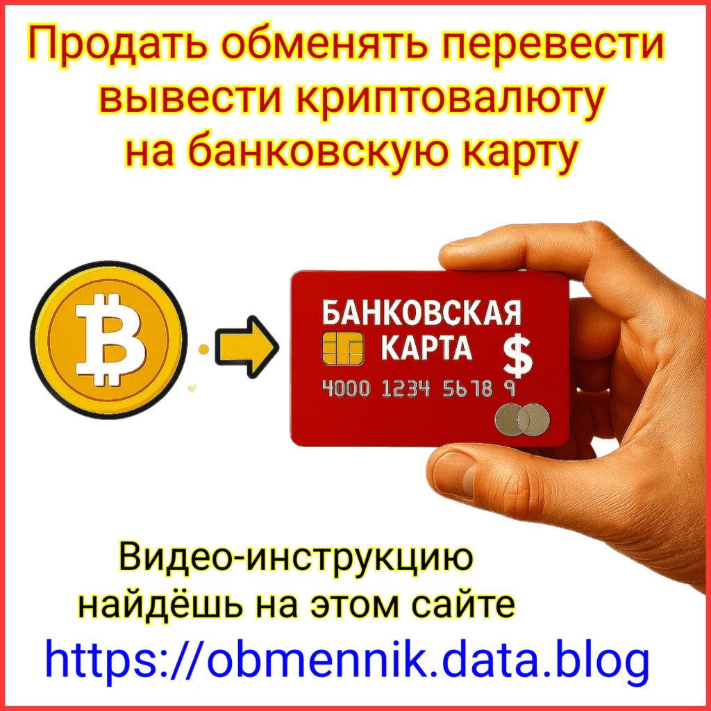 ВНИЗУ видео-инструкция — обмен криптовалюты на банковские деньги на банковскую карту